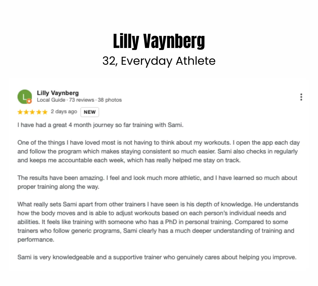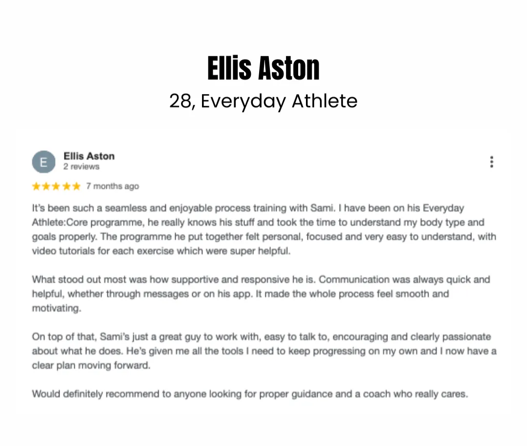 Most online plans are cookie-cutter generic templates. The Everyday Athlete programme is fully bespoke tailored programming, direct coaching access, injury management, performance tracking, and ongoing adaptations to fit your real life and goals. This is a direct reflection of the pricing.