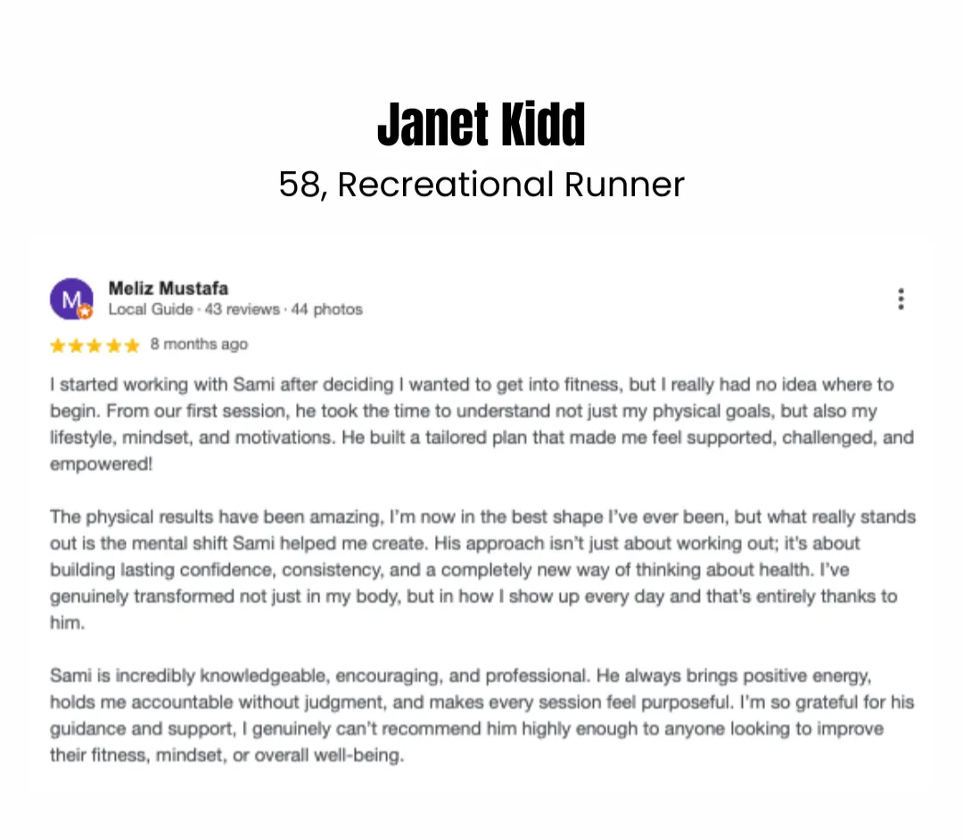 Typically, you’ll train 3–5 sessions per week, depending on your goals and your current training level. Sessions are around 45–75 minutes, and we’ll adjust based on your availability, lifestyle and ability.