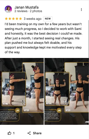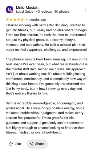 Typically, you’ll train 3–5 sessions per week, depending on your goals and your current training level. Sessions are around 45–75 minutes, and we’ll adjust based on your availability, lifestyle and ability.