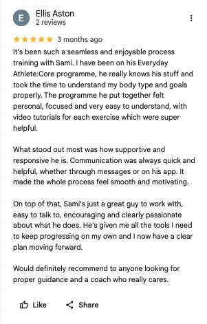 Most online plans are cookie-cutter generic templates. The Everyday Athlete programme is fully bespoke tailored programming, direct coaching access, injury management, performance tracking, and ongoing adaptations to fit your real life and goals. This is a direct reflection of the pricing.